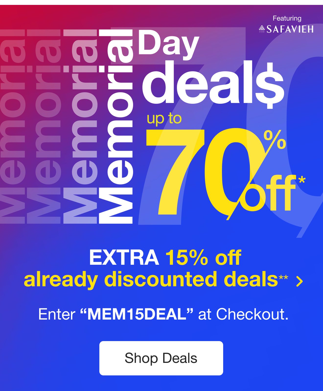 | | This message was sent to: kalia1.erieweary@blogger.com | | | | **15% off Coupon may only be used once and cannot be combined with any other offer nor past purchases. For qualifying items, product page price will show, "Today After Coupon". Applies to items in current site promotions. Total discount limited to $5,000. Purchases of gift cards and Welcome RewardsMemberships are not included. Discount appears at checkout. See site for details, exclusions and limitations. Code MEM15DEAL automatically applies to items in cart at checkout. Not redeemable on bedbathandbeyond.com. Offer subject to end at any time. Offer ends May 28, 2024 11:59 PM MST. | | | | | *Subject to limitations or restrictions. See site for details | | ºFeatured Products are sponsored ads that are relevant to you. | | | Products and prices subject to change. Offer, products and prices may not be available for international customers. See website for details. | | | | Beyond, Overstock, and Overstock.com are trademarks and service marks of Beyond, Inc. Any trademarks used in connection with products or services appearing on this email or the website are the property of their respective owners. See Terms & Conditions for more information. |