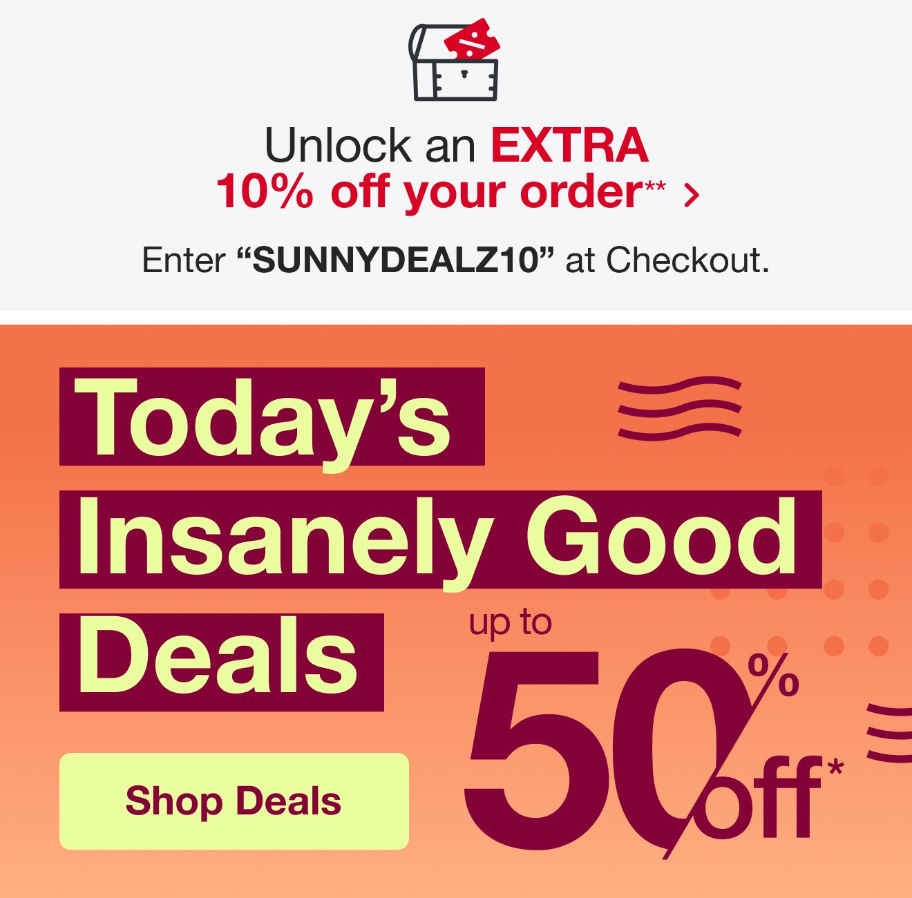 | | This message was sent to: kalia1.erieweary@blogger.com | | | | **10% off Coupon may only be used once and cannot be combined with any other offer nor past purchases. For qualifying items, product page price will show, "Today After Coupon". Applies to items in current site promotions. Total discount limited to $5,000. Purchases of gift cards and Welcome RewardsMemberships are not included. Discount appears at checkout. See site for details, exclusions and limitations. Code SUNNYDEALZ10 automatically applies to items in cart at checkout. Not redeemable on bedbathandbeyond.com. Offer subject to end at any time. Offer ends June 04, 2024 11:59 PM MDT. | | | | | *Subject to limitations or restrictions. See site for details | | ΒΊFeatured Products are sponsored ads that are relevant to you. | | | Products and prices subject to change. Offer, products and prices may not be available for international customers. See website for details. | | | | Beyond, Overstock, and Overstock.com are trademarks and service marks of Beyond, Inc. Any trademarks used in connection with products or services appearing on this email or the website are the property of their respective owners. See Terms & Conditions for more information. |