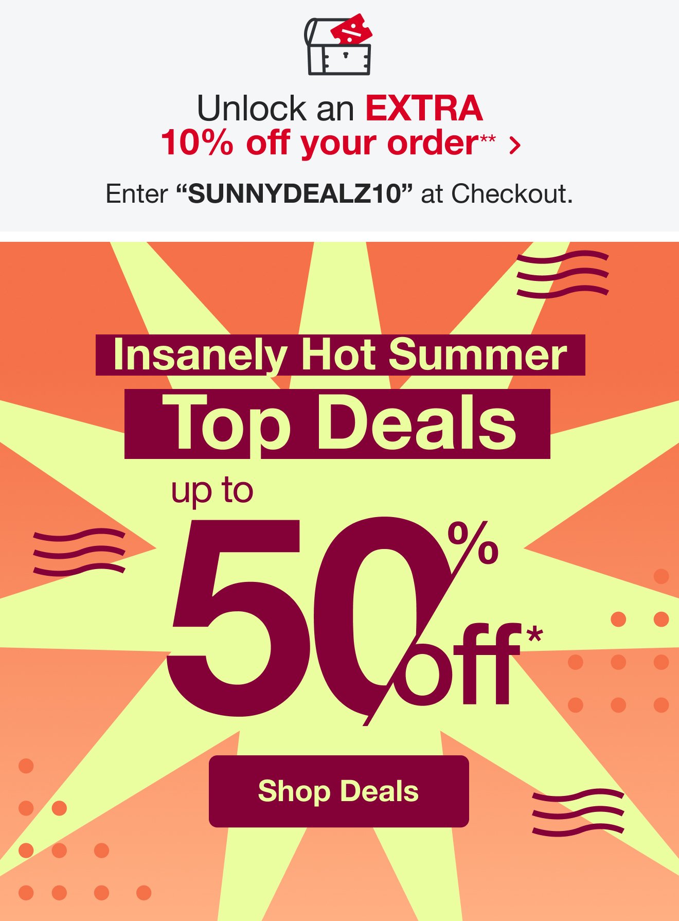 | | This message was sent to: kalia1.erieweary@blogger.com | | | | **10% off Coupon may only be used once and cannot be combined with any other offer nor past purchases. For qualifying items, product page price will show, "Today After Coupon". Applies to items in current site promotions. Total discount limited to $5,000. Purchases of gift cards and Welcome RewardsMemberships are not included. Discount appears at checkout. See site for details, exclusions and limitations. Code SUNNYDEALZ10 automatically applies to items in cart at checkout. Not redeemable on bedbathandbeyond.com. Offer subject to end at any time. Offer ends June 15, 2024 11:59 PM MDT. | | | | | *Subject to limitations or restrictions. See site for details | | ºFeatured Products are sponsored ads that are relevant to you. | | | Products and prices subject to change. Offer, products and prices may not be available for international customers. See website for details. | | | | Beyond, Overstock, and Overstock.com are trademarks and service marks of Beyond, Inc. Any trademarks used in connection with products or services appearing on this email or the website are the property of their respective owners. See Terms & Conditions for more information. |