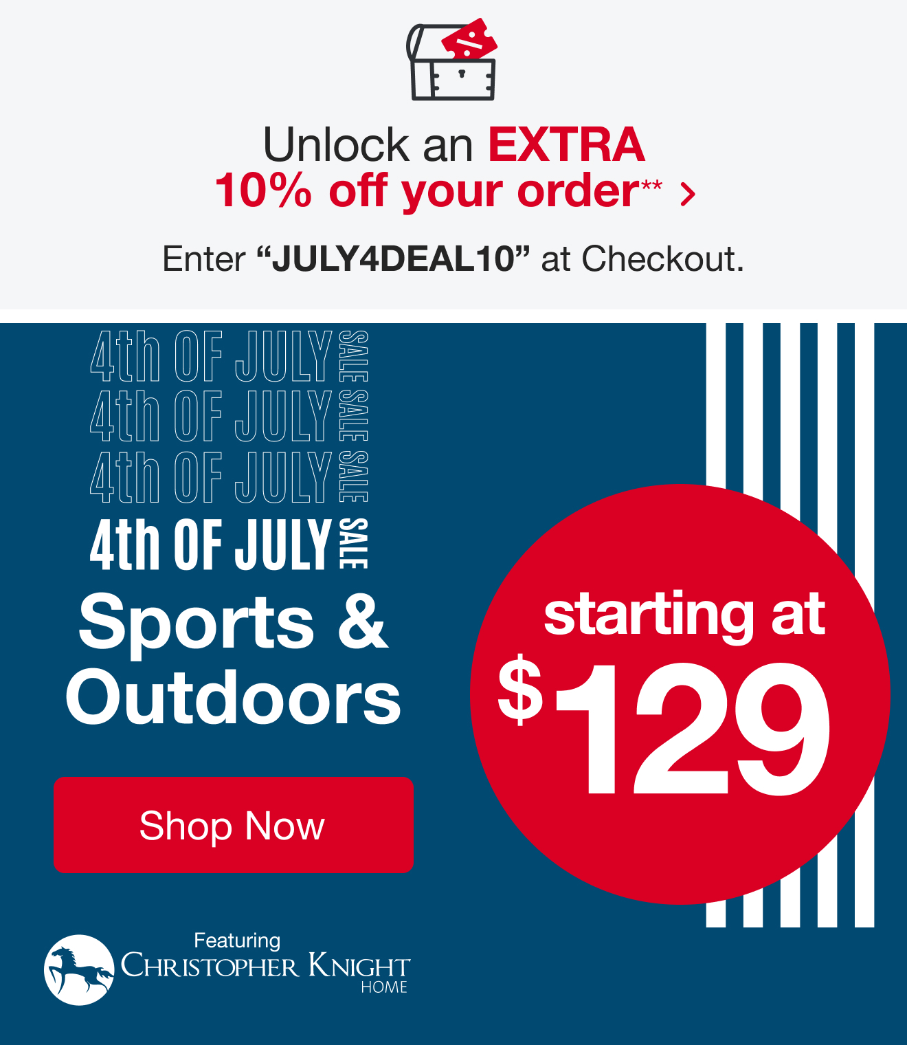 | | This message was sent to: kalia1.erieweary@blogger.com | | | | **10% off Coupon may only be used once and cannot be combined with any other offer nor past purchases. For qualifying items, product page price will show, "Today After Coupon". Applies to items in current site promotions. Total discount limited to $5,000. Purchases of gift cards and Welcome RewardsMemberships are not included. Discount appears at checkout. See site for details, exclusions and limitations. Code JULY4DEAL10 automatically applies to items in cart at checkout. Not redeemable on bedbathandbeyond.com. Offer subject to end at any time. Offer ends June 27, 2024 11:59 PM MDT. | | | | | *Subject to limitations or restrictions. See site for details | | ºFeatured Products are sponsored ads that are relevant to you. | | | Products and prices subject to change. Offer, products and prices may not be available for international customers. See website for details. | | | | Beyond, Overstock, and Overstock.com are trademarks and service marks of Beyond, Inc. Any trademarks used in connection with products or services appearing on this email or the website are the property of their respective owners. See Terms & Conditions for more information. |