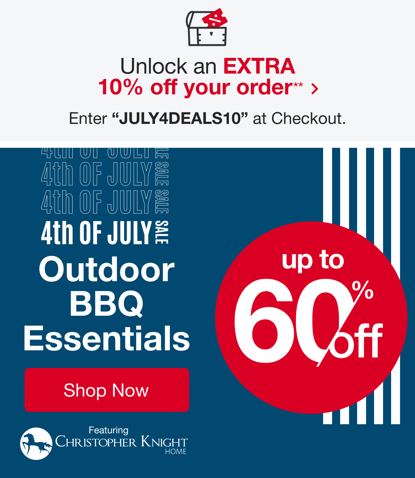 Overstock | | | Outdoor Shades & Structure Deals | | | | |  | | | | This message was sent to: kalia1.erieweary@blogger.com | | | | **10% off Coupon may only be used once and cannot be combined with any other offer nor past purchases. For qualifying items, product page price will show, "Today After Coupon". Applies to items in current site promotions. Total discount limited to $5,000. Purchases of gift cards and Welcome RewardsMemberships are not included. Discount appears at checkout. See site for details, exclusions and limitations. Code JULY4DEAL10 automatically applies to items in cart at checkout. Not redeemable on bedbathandbeyond.com. Offer subject to end at any time. Offer ends June 25, 2024 11:59 PM MDT. | | | | | *Subject to limitations or restrictions. See site for details | | ΒΊFeatured Products are sponsored ads that are relevant to you. | | | Products and prices subject to change. Offer, products and prices may not be available for international customers. See website for details. | | | | Beyond, Overstock, and Overstock.com are trademarks and service marks of Beyond, Inc. Any trademarks used in connection with products or services appearing on this email or the website are the property of their respective owners. See Terms & Conditions for more information. |