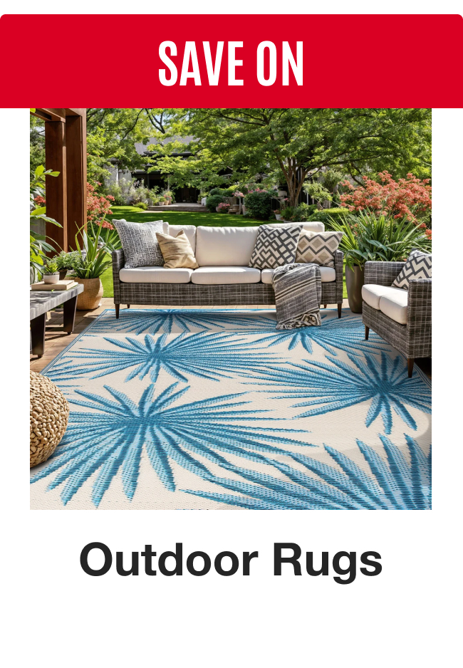 Save on outdoor dining tables, rugs, lighting, chairs & so much more!