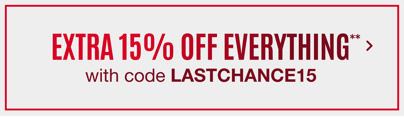 Overstock | | | Last Chance Black Friday Deals | | | | |  | | | | This message was sent to: kalia1.erieweary@blogger.com | | | | **15% off Coupon may only be used once and cannot be combined with any other offer nor past purchases. For qualifying items, product page price will show, "Today After Coupon". Applies to items in current site promotions. Total discount limited to $5,000. Purchases of gift cards and Welcome RewardsMemberships are not included. Discount appears at checkout. See site for details, exclusions and limitations. Code LASTCHANCE15 automatically applies to items in cart at checkout. Not redeemable on bedbathandbeyond.com. Offer subject to end at any time. Offer ends November 30, 2024 11:59 PM MST. | | | | | *Subject to limitations or restrictions. See site for details | | ΒΊFeatured Products are sponsored ads that are relevant to you. | | | Products and prices subject to change. Offer, products and prices may not be available for international customers. See website for details. | | | | Beyond, Overstock, and Overstock.com are trademarks and service marks of Beyond, Inc. Any trademarks used in connection with products or services appearing on this email or the website are the property of their respective owners. See Terms & Conditions for more information. |