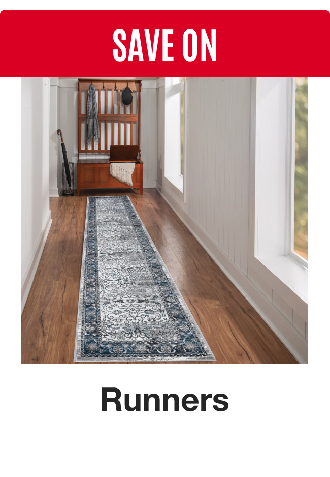 Unroll HUGE savings on area rugs, runners, kitchen mats & more!