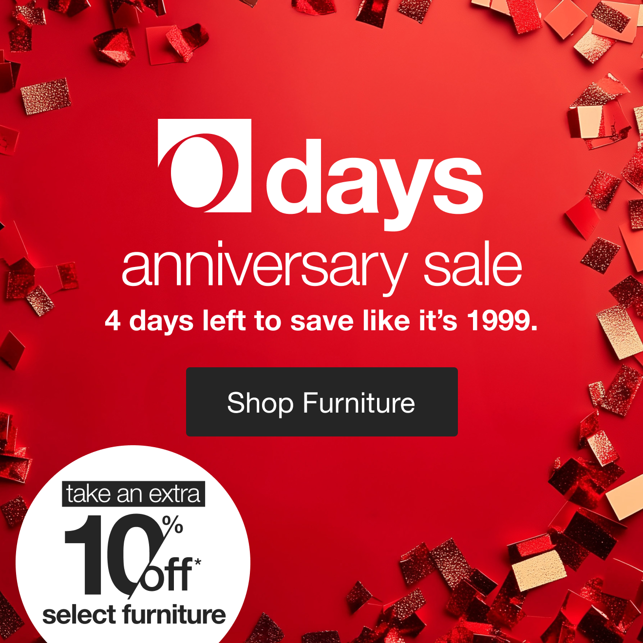 4 days left to save on select furniture & more.