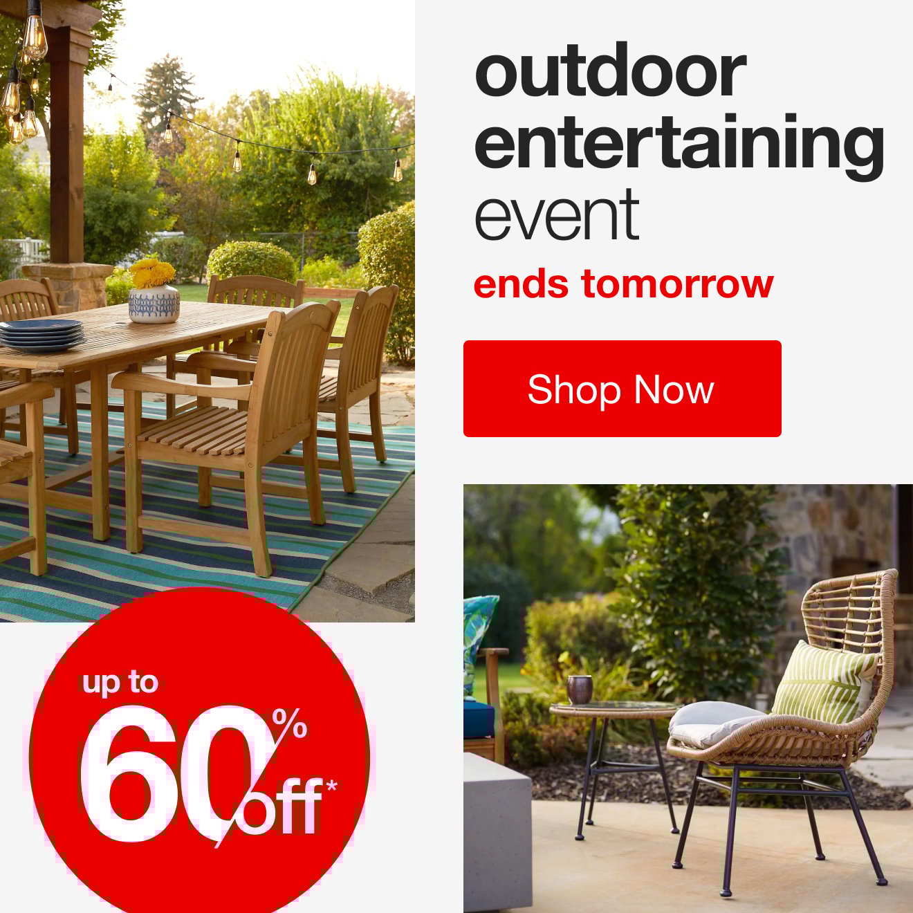 Don't miss the Outdoor Entertaining Event: these deals are almost gone.