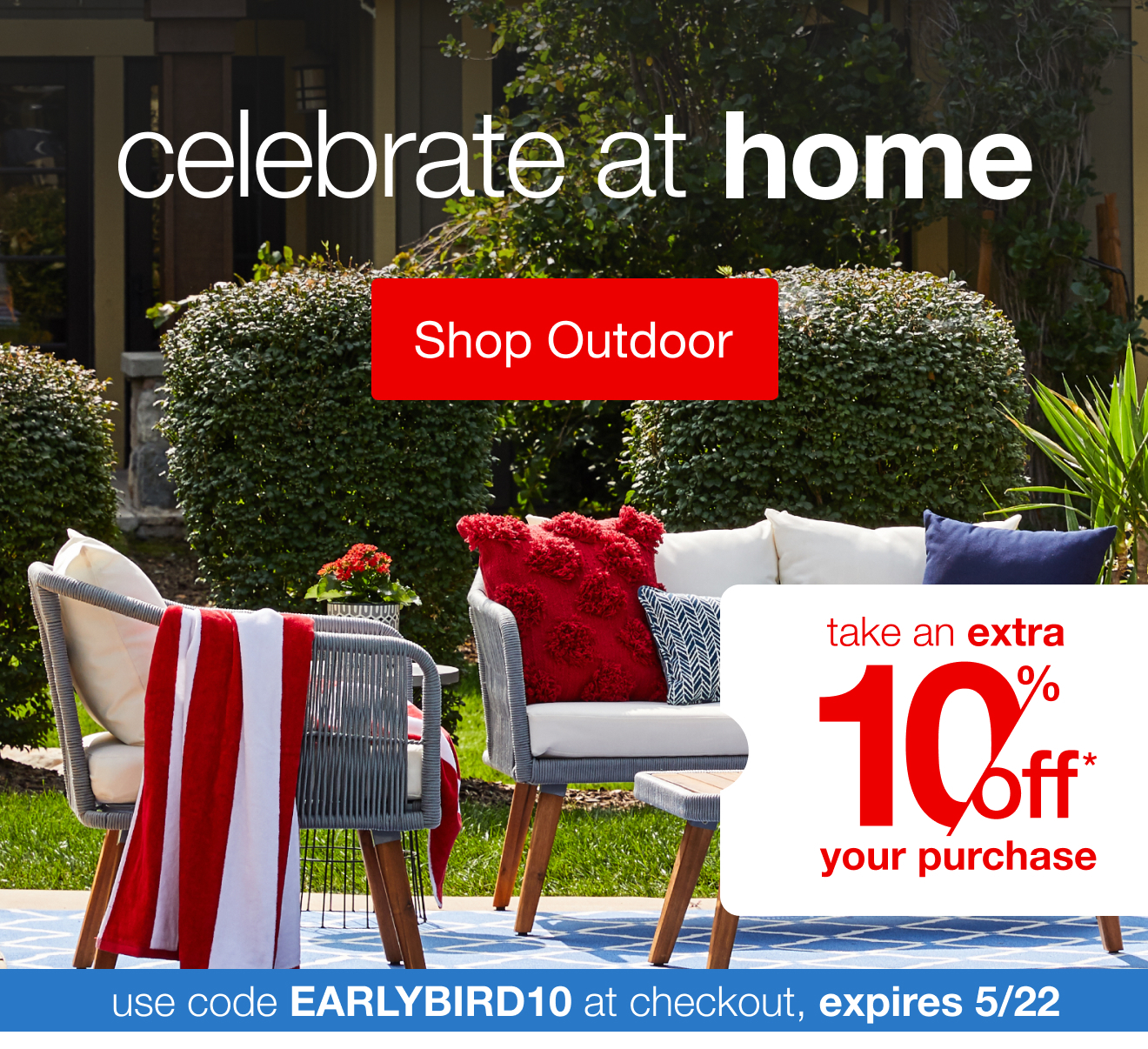 | |  | | |  | | |  | | This message was sent to: kalia1.erieweary@blogger.com | | | | **10% off Coupon may only be used once and cannot be combined with any other offer nor past purchases. For qualifying items, product page price will show, "Today After Coupon". Offer does not apply to Watches, Apparel, Shoes, or Designer Shop. Total discount limited to $5,000. Purchases of gift cards and Welcome RewardsMemberships are not included. Discount appears at checkout. See site for details, exclusions and limitations. Code EARLYBIRD10 must be entered at checkout and will apply to eligible items in cart. Not redeemable on bedbathandbeyond.com. Offer subject to end at any time. Offer ends May 22, 2025 11:59 PM MDT. | | | | | *Subject to limitations or restrictions. See site for details | | ΒΊFeatured Products are sponsored ads that are relevant to you. | | | Products and prices subject to change. Offer, products and prices may not be available for international customers. See website for details. | | | | Bed Bath & Beyond, Overstock, and Overstock.com are trademarks and service marks of Beyond, Inc. Any trademarks used in connection with products or services appearing on this email or the website are the property of their respective owners. See Terms & Conditions for more information. |