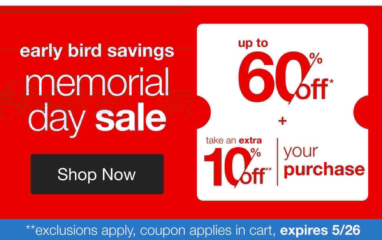 | |  | | |  | | |  | | |  | | |  | | This message was sent to: kalia1.erieweary@blogger.com | | | | **10% off Coupon may only be used once and cannot be combined with any other offer nor past purchases. For qualifying items, product page price will show, "Today After Coupon". Offer does not apply to Watches, Apparel, Shoes, or Designer Shop. Total discount limited to $5,000. Purchases of gift cards and Welcome RewardsMemberships are not included. Discount appears at checkout. See site for details, exclusions and limitations. Code EARLYBIRD10 automatically applies to items in cart at checkout. Not redeemable on bedbathandbeyond.com. Offer subject to end at any time. Offer ends May 23, 2025 11:59 PM MDT. | | | | | *Subject to limitations or restrictions. See site for details | | ΒΊFeatured Products are sponsored ads that are relevant to you. | | | Products and prices subject to change. Offer, products and prices may not be available for international customers. See website for details. | | | | Bed Bath & Beyond, Overstock, and Overstock.com are trademarks and service marks of Beyond, Inc. Any trademarks used in connection with products or services appearing on this email or the website are the property of their respective owners. See Terms & Conditions for more information. |