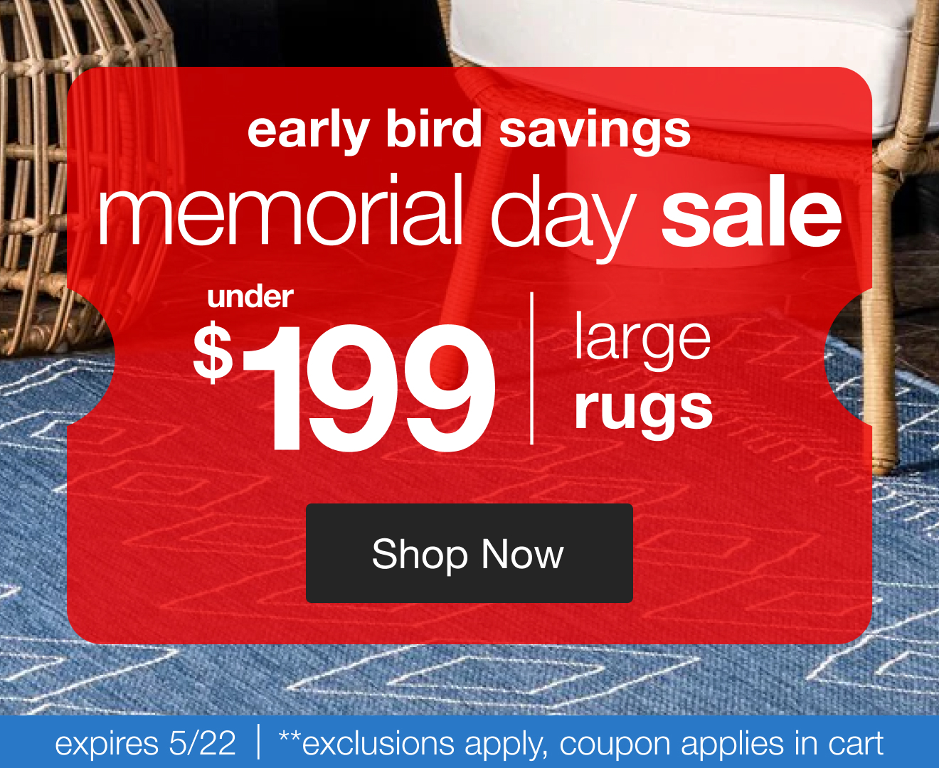 Overstock | | | Rug Deals Worth Celebrating | | |  | | This message was sent to: kalia1.erieweary@blogger.com | | | | **10% off Coupon may only be used once and cannot be combined with any other offer nor past purchases. For qualifying items, product page price will show, "Today After Coupon". Offer does not apply to Watches, Apparel, Shoes, or Designer Shop. Total discount limited to $5,000. Purchases of gift cards and Welcome RewardsMemberships are not included. Discount appears at checkout. See site for details, exclusions and limitations. Code automatically applies to items in cart at checkout. Not redeemable on bedbathandbeyond.com. Offer subject to end at any time. Offer ends May 17, 2025 11:59 PM MDT. | | | | | *Subject to limitations or restrictions. See site for details | | ΒΊFeatured Products are sponsored ads that are relevant to you. | | | Products and prices subject to change. Offer, products and prices may not be available for international customers. See website for details. | | | | Bed Bath & Beyond, Overstock, and Overstock.com are trademarks and service marks of Beyond, Inc. Any trademarks used in connection with products or services appearing on this email or the website are the property of their respective owners. See Terms & Conditions for more information. |