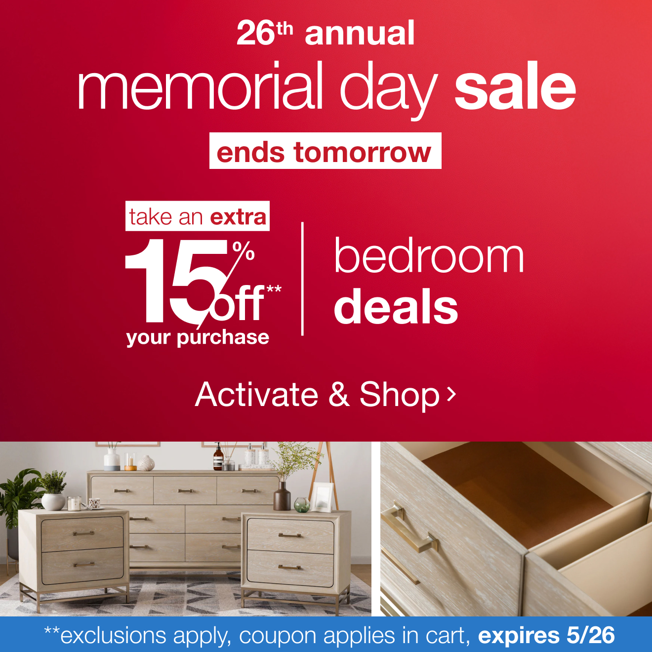 | |  | | |  | | |  | | |  | | |  | | This message was sent to: kalia1.erieweary@blogger.com | | | | **15% off Coupon may only be used once and cannot be combined with any other offer nor past purchases. For qualifying items, product page price will show, "Today After Coupon". Offer does not apply to Jewelry, Watches, Apparel, or Designer Shop. Total discount limited to $5,000. Purchases of gift cards and Welcome RewardsMemberships are not included. Discount appears at checkout. See site for details, exclusions and limitations. Code MEMORIAL15 automatically applies to items in cart at checkout. Not redeemable on bedbathandbeyond.com. Offer subject to end at any time. Offer ends May 26, 2025 11:59 PM MDT. | | | | | *Subject to limitations or restrictions. See site for details | | ΒΊFeatured Products are sponsored ads that are relevant to you. | | | Products and prices subject to change. Offer, products and prices may not be available for international customers. See website for details. | | | | Bed Bath & Beyond, Overstock, and Overstock.com are trademarks and service marks of Beyond, Inc. Any trademarks used in connection with products or services appearing on this email or the website are the property of their respective owners. See Terms & Conditions for more information. |