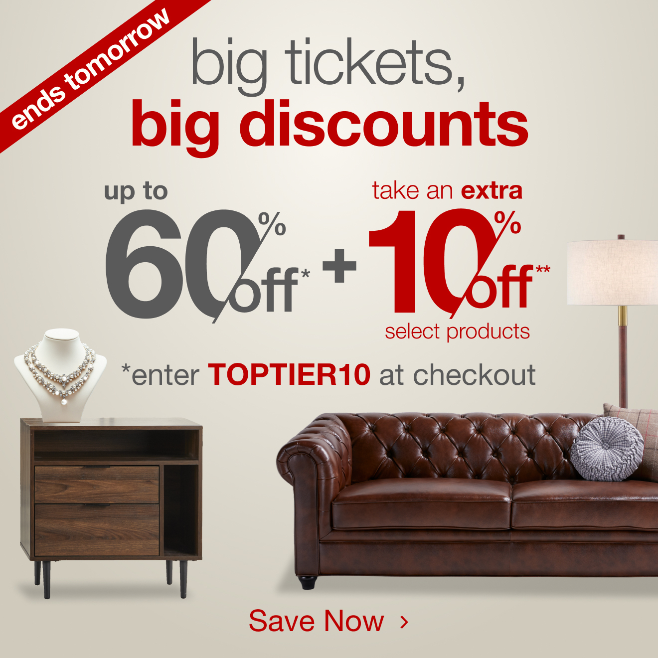 | |  | | |  | | |  | | |  | | This message was sent to: kalia1.erieweary@blogger.com | | | | **Extra 10% off select products may only be used once and cannot be combined with any other offer nor past purchases. Total discount limited to $5,000. Purchases of gift cards and BEYOND+ memberships are not included. Valid only on select styles, other exclusions may apply. For qualifying items, product page price will show, "Today After Coupon". See site for details, exclusions and limitations. Enter code TOPTIER10 at checkout. Not redeemable on bedbathandbeyond.com. Offer ends July 22, 2025 11:59 PM MST, but may be subject to end at any time prior. | | | | | *Subject to limitations or restrictions. See site for details. | | ΒΊFeatured Products are sponsored ads that are relevant to you. | | | | Products and prices subject to change. Offer, products and prices may not be available for international customers. See website for details. | | | | Overstock.com, Overstock, Bed Bath & Beyond and buybuy BABY are trademarks and service marks of Beyond, Inc. Any trademarks used in connection with products or services appearing on this email or the website are the property of their respective owners. See Terms & Conditions for more information. |
