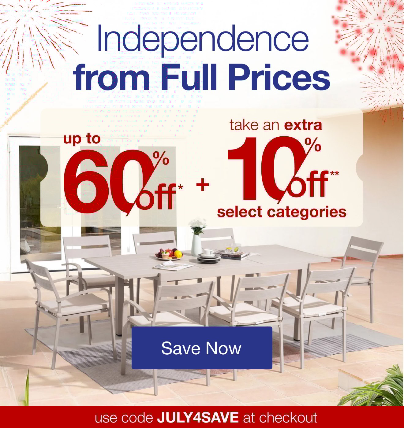 | |  | | |  | | |  | | |  | | |  | | |  | | This message was sent to: kalia1.erieweary@blogger.com | | | | **Extra 10% off Patio Furniture, Outdoor Umbrellas, & Outdoor Rugs may only be used once and cannot be combined with any other offer nor past purchases. Total discount limited to $5,000. Purchases of gift cards and BEYOND+ memberships are not included. Valid only on select styles, other exclusions may apply. For qualifying items, product page price will show, "Today After Coupon". See site for details, exclusions and limitations. Use code JULY4SAVE at checkout. Not redeemable on bedbathandbeyond.com. Offer ends July 6, 2025 11:59 PM MST, but may be subject to end at any time prior. | | | | | *Subject to limitations or restrictions. See site for details. | | ºFeatured Products are sponsored ads that are relevant to you. | | | | Products and prices subject to change. Offer, products and prices may not be available for international customers. See website for details. | | | | Overstock.com, Overstock, Bed Bath & Beyond and buybuy BABY are trademarks and service marks of Beyond, Inc. Any trademarks used in connection with products or services appearing on this email or the website are the property of their respective owners. See Terms & Conditions for more information. |