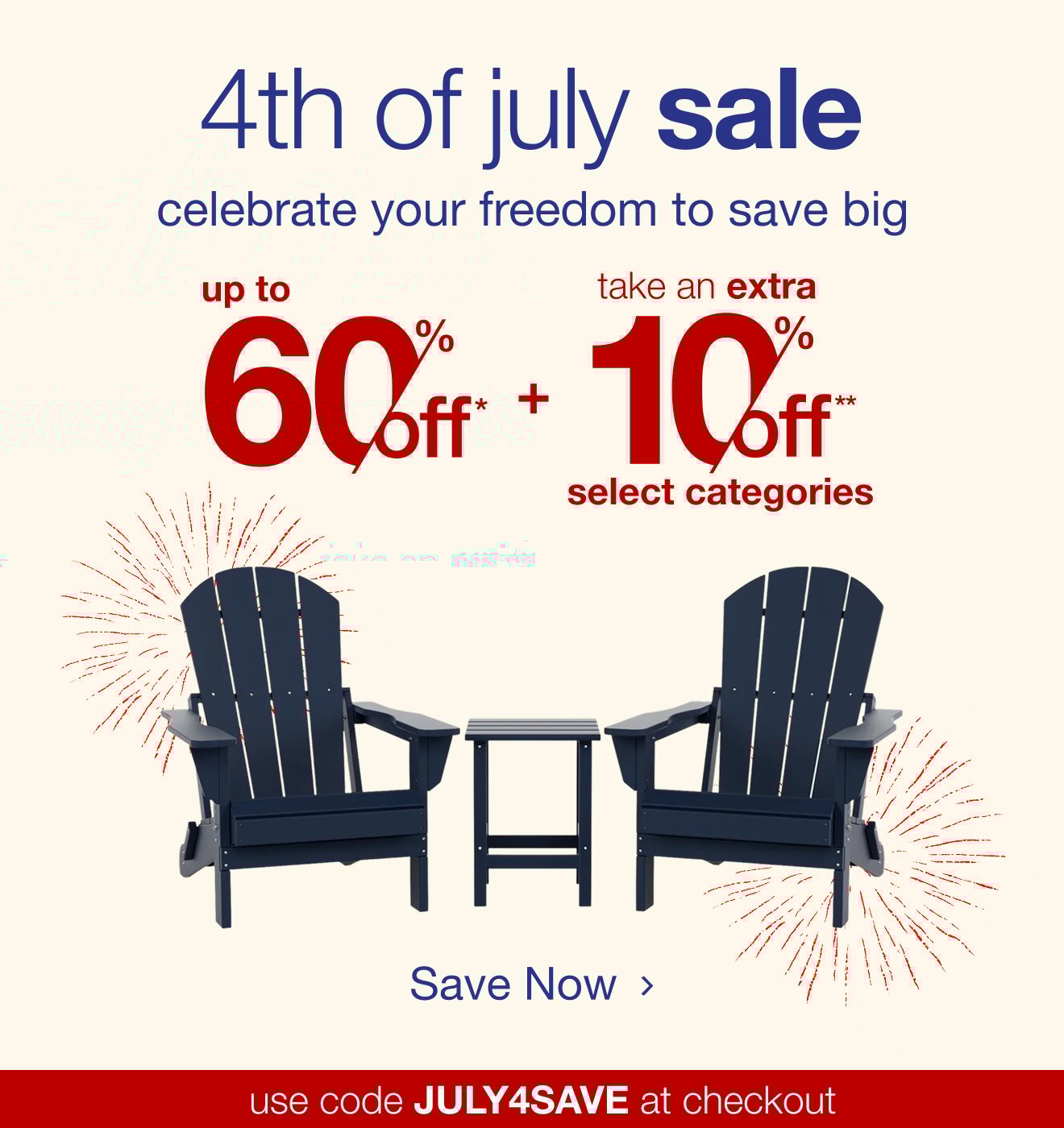 | |  | | |  | | |  | | |  | | |  | | This message was sent to: kalia1.erieweary@blogger.com | | | | **Extra 10% off Patio Furniture, Outdoor Umbrellas, & Outdoor Rugs may only be used once and cannot be combined with any other offer nor past purchases. Total discount limited to $5,000. Purchases of gift cards and BEYOND+ memberships are not included. Valid only on select styles, other exclusions may apply. For qualifying items, product page price will show, "Today After Coupon". See site for details, exclusions and limitations. Use code JULY4SAVE at checkout. Not redeemable on bedbathandbeyond.com. Offer ends July 6, 2025 11:59 PM MST, but may be subject to end at any time prior. | | | | | *Subject to limitations or restrictions. See site for details. | | ΒΊFeatured Products are sponsored ads that are relevant to you. | | | | Products and prices subject to change. Offer, products and prices may not be available for international customers. See website for details. | | | | Overstock.com, Overstock, Bed Bath & Beyond and buybuy BABY are trademarks and service marks of Beyond, Inc. Any trademarks used in connection with products or services appearing on this email or the website are the property of their respective owners. See Terms & Conditions for more information. |