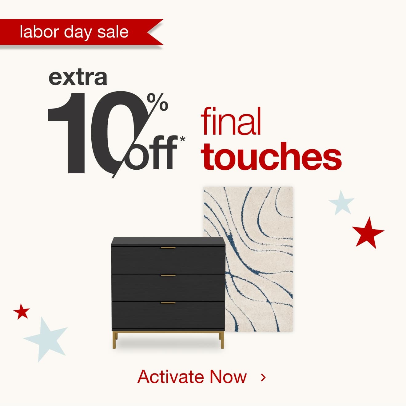 Labor Day Weekend only—deeper discounts on decor, rugs & more.