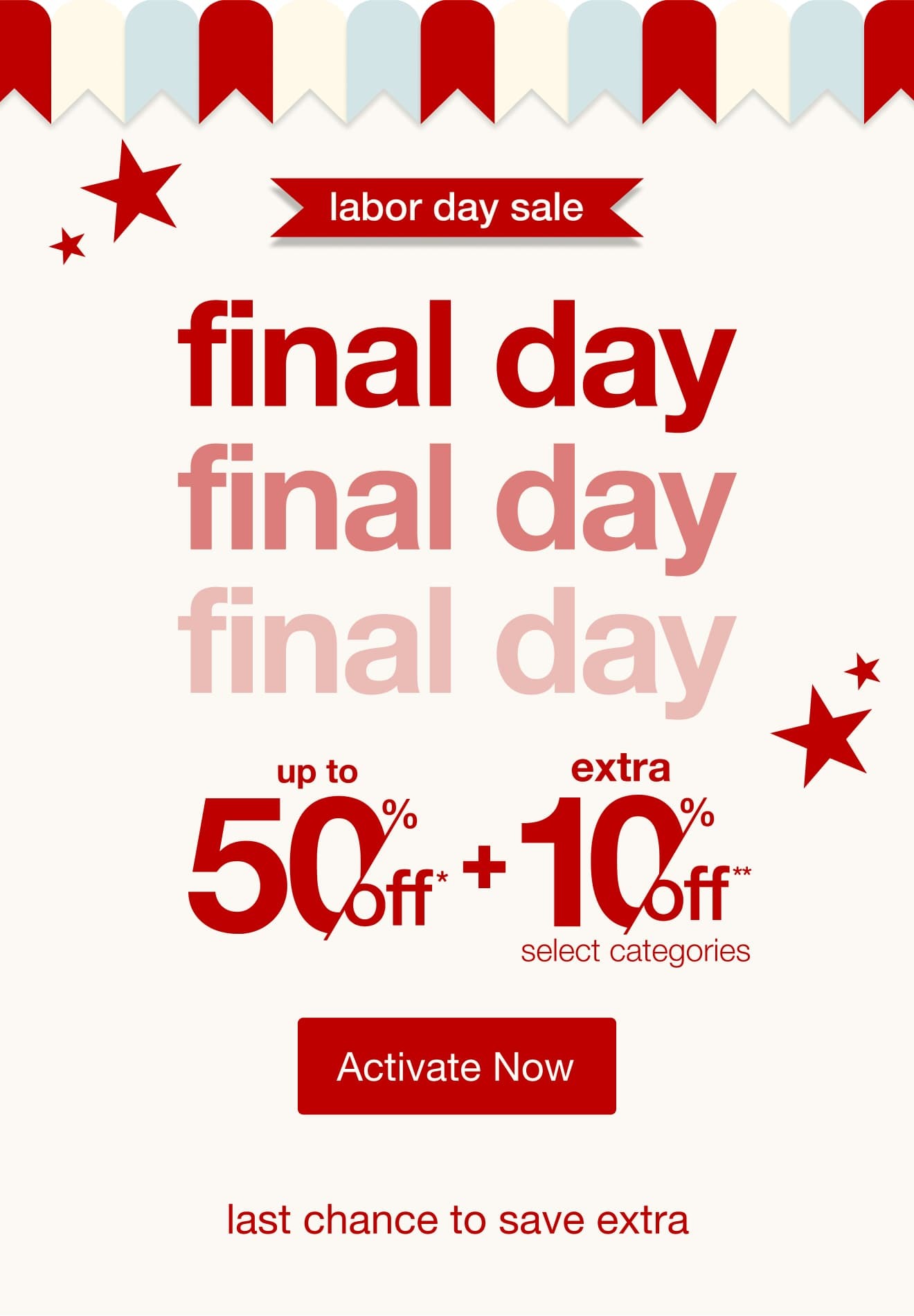 Last Chance Labor Day Sale ends tonight—shop now before it's too late.