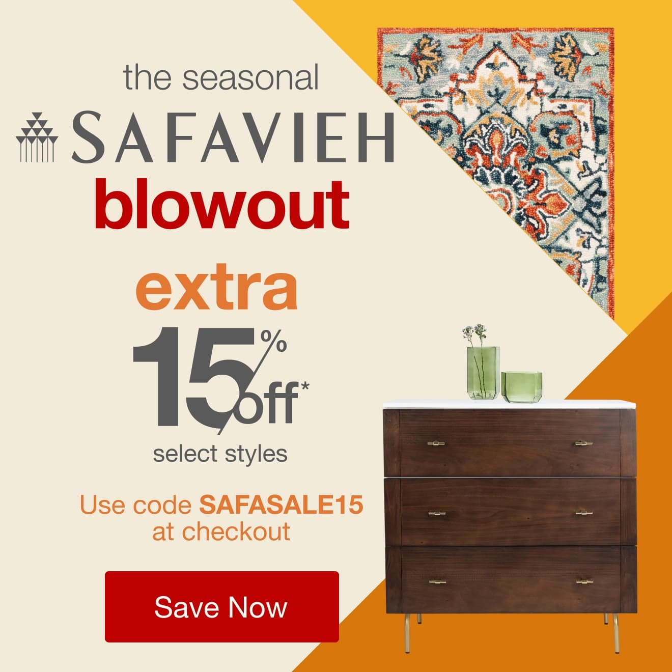 Save on rugs, furniture & decor with the Seasonal Safavieh Blowout.